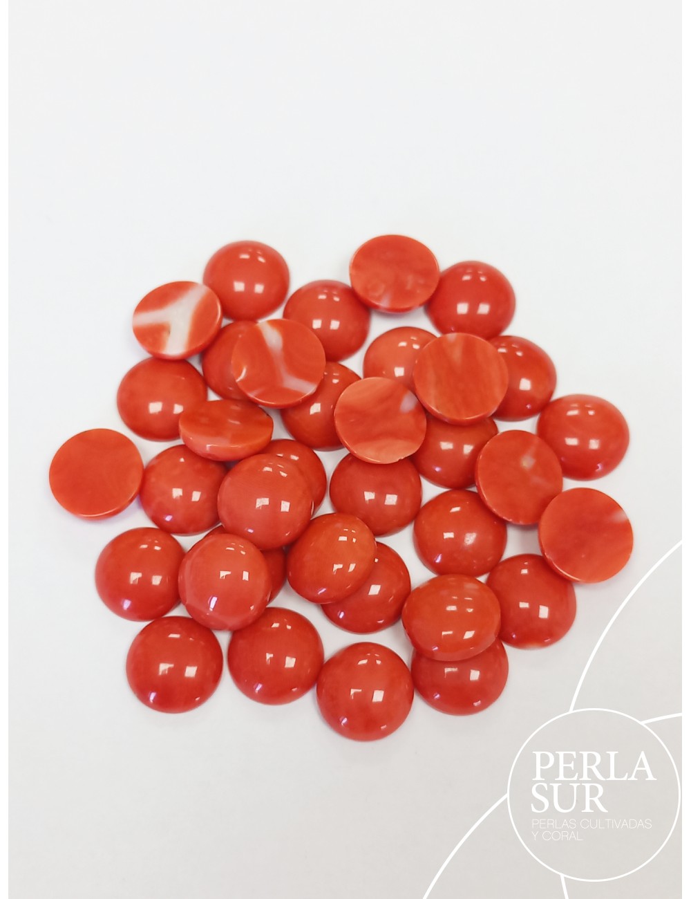 Cabuchón de coral japonés Momo, de la especie Corallium Elatius. En talla redonda.