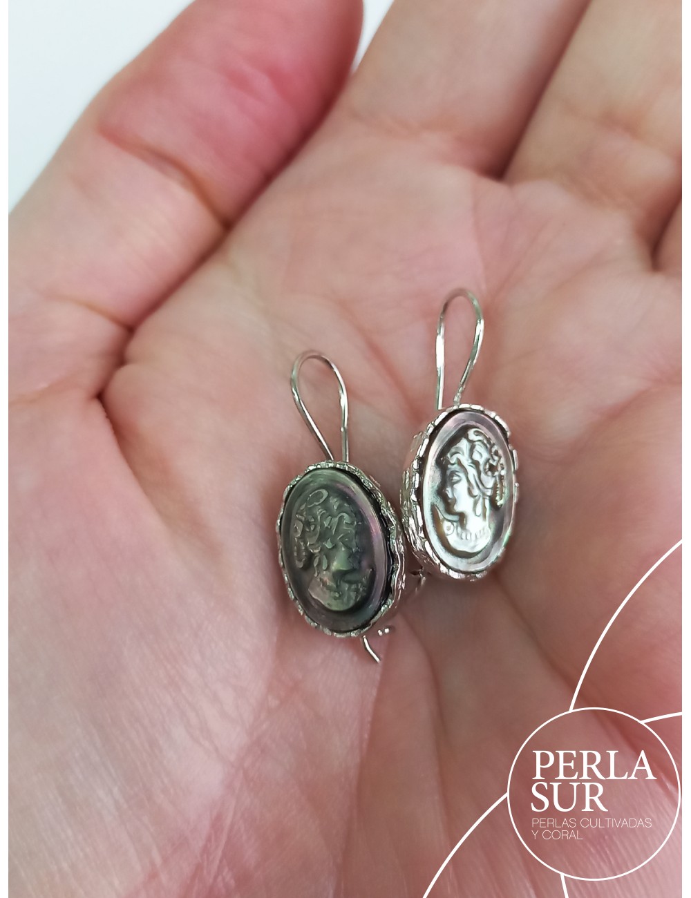 Pendientes Helena oscuro 10x14mm Plata Camafeo Tahití
