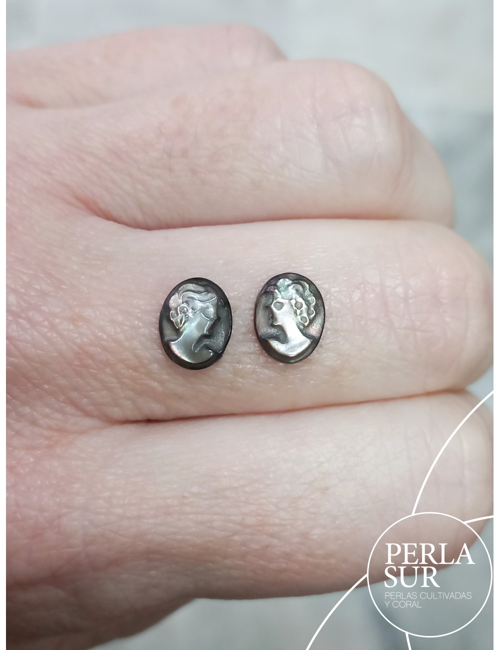 Camafeo Madreperla Tahití 9x7mm. Sueltos o en pareja con caras opuestas. Concha de ostra tallada a mano.