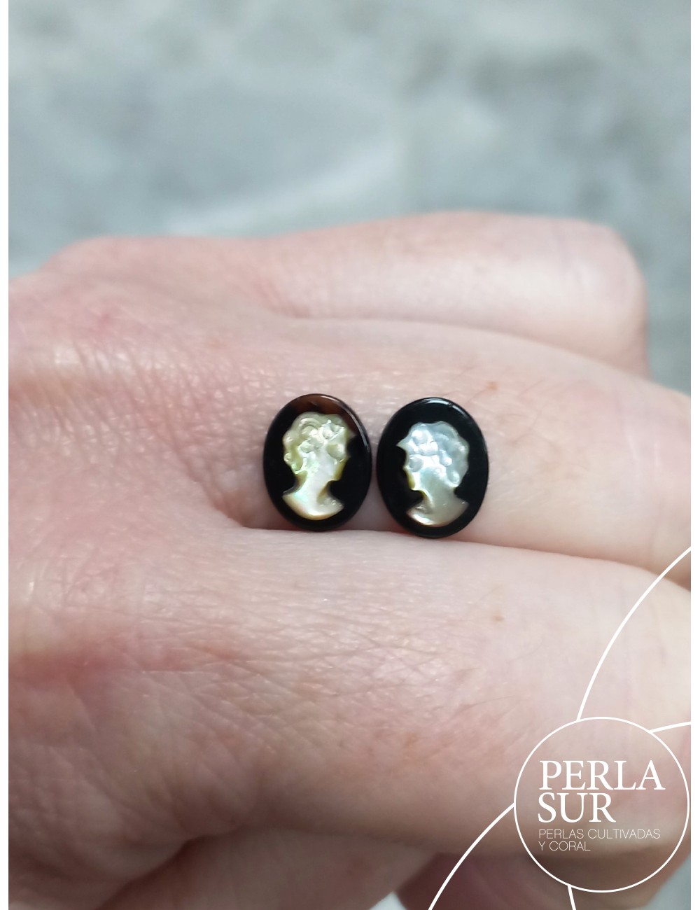 Par 8x10mm Sara Camafeos Nácar Tahití + Ónix