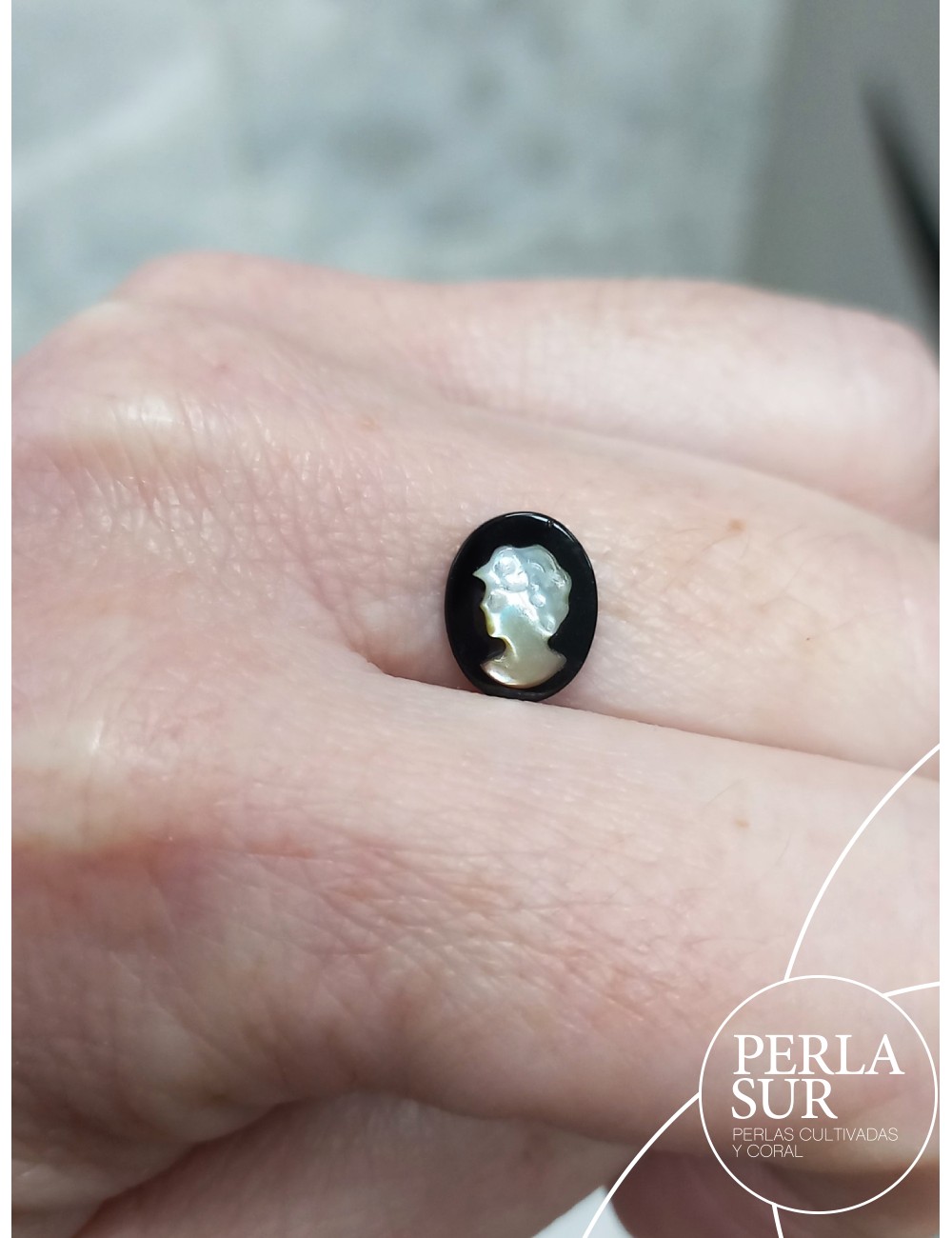 Camafeo Madreperla Tahití y Onix 10x8mm. Sueltos o en pareja con caras opuestas. Concha de ostra tallada a mano.