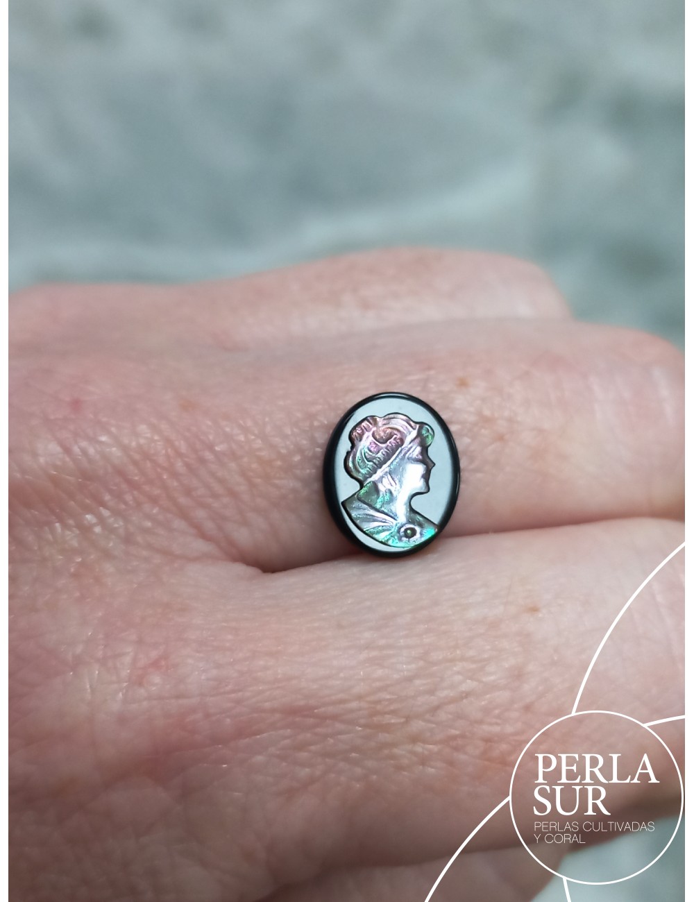 Camafeo Madreperla Tahití y Onix 12x10mm. Sueltos o en pareja con caras opuestas. Concha de ostra tallada a mano.