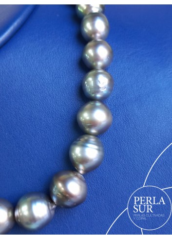 Hilo de Perla Tahití Barroca en disminución. Perlas cultivadas en la ostra Pinctada Margaritífera.