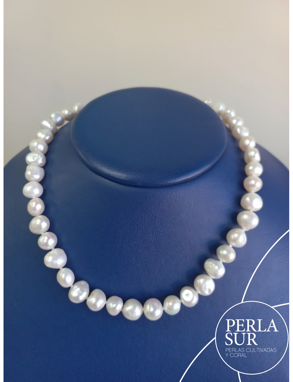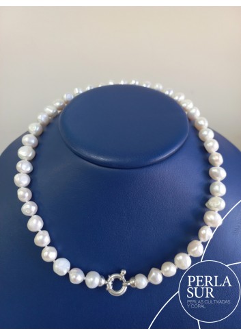 Collar de perla agua dulce barroca 8-9mm con cierre reasa marinera de plata 925. Largo del collar ya montado 41cm.