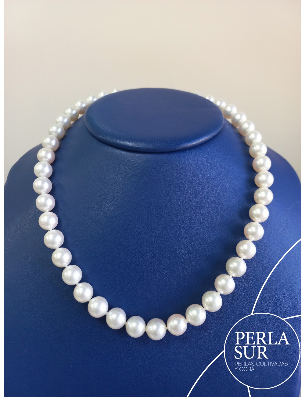 Collar de perla Akoya redonda, cultivada en la ostra Pinctada Martensii.