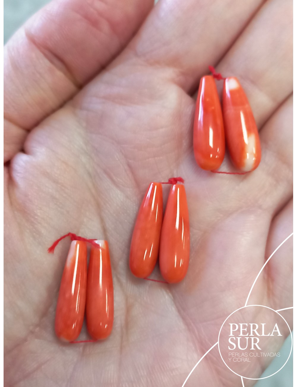 Perillas de coral japonés (especie Corallium Elatius). Talladas a mano.