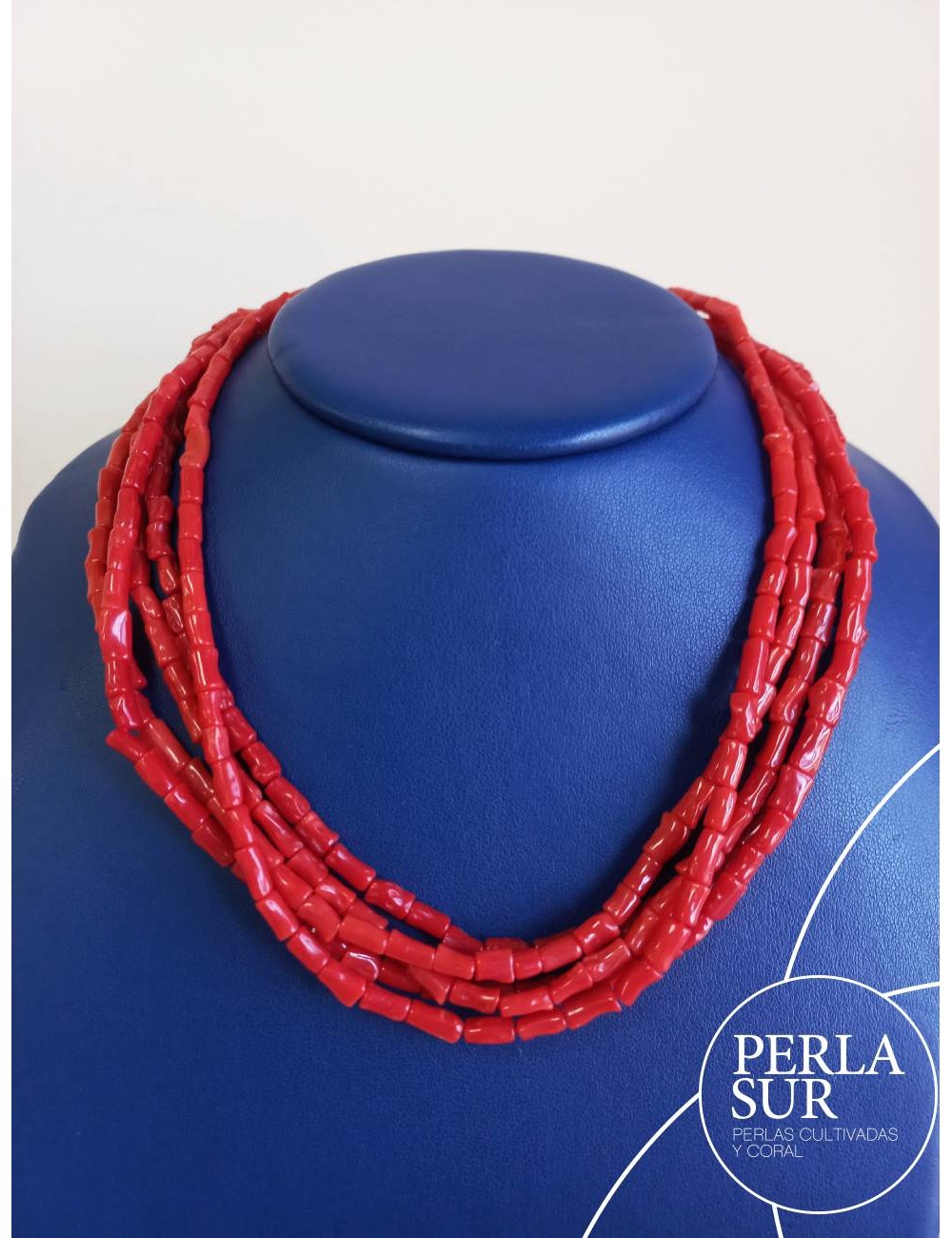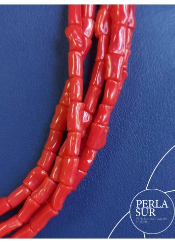Hilo de pequeños tronquitos de 4x7mm de coral mediterráneo. Largo total 46cm.