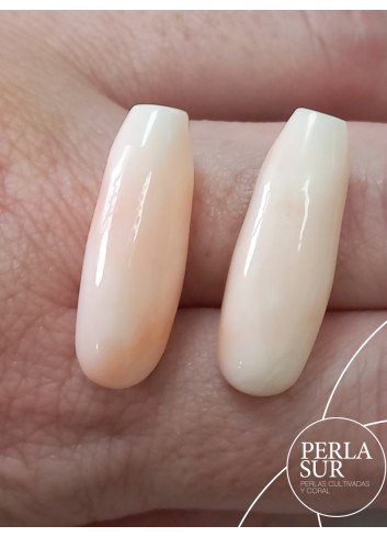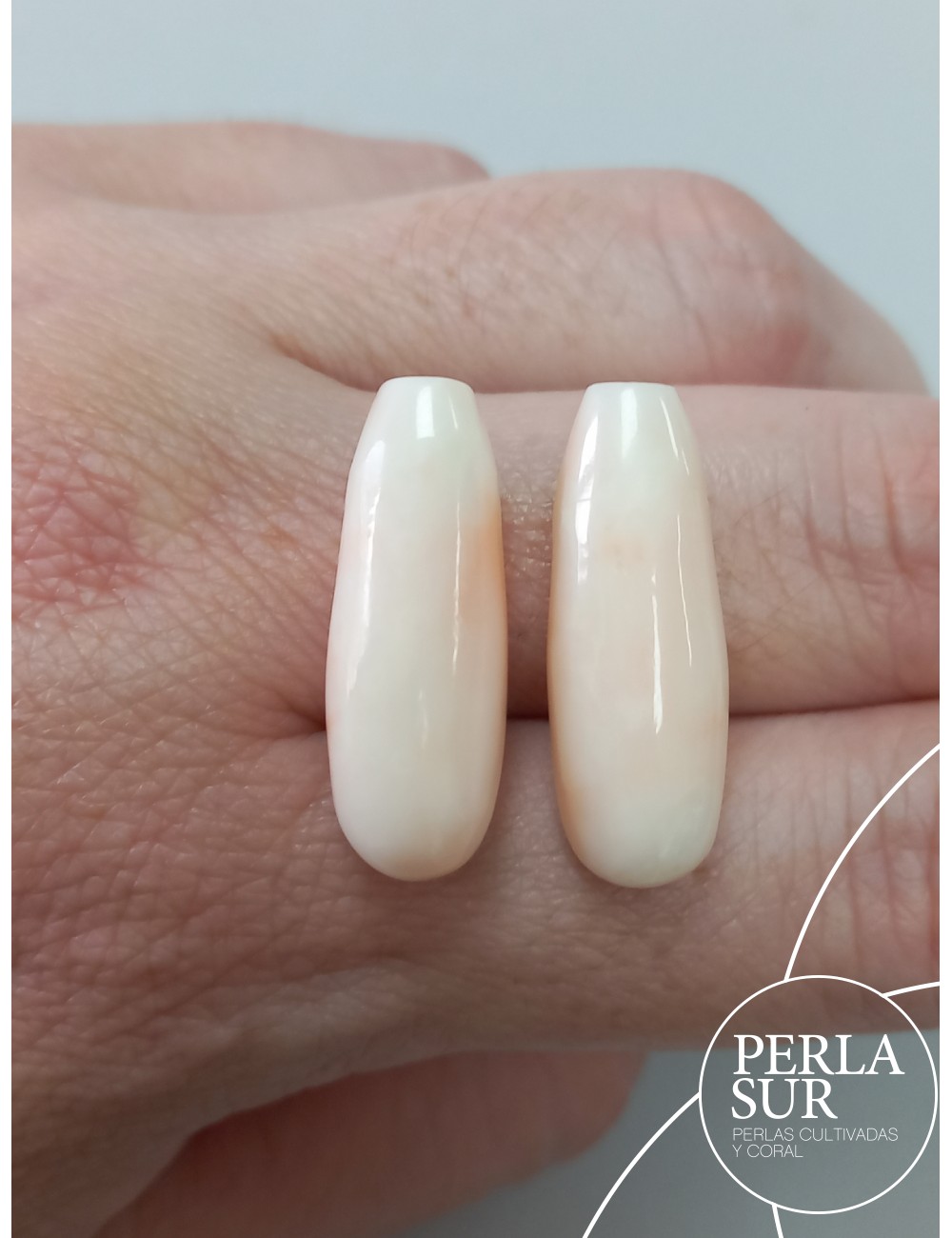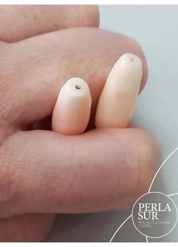 Pareja perillas coral rosa, tono claro. Medio taladro. Precio del par, indivisible.