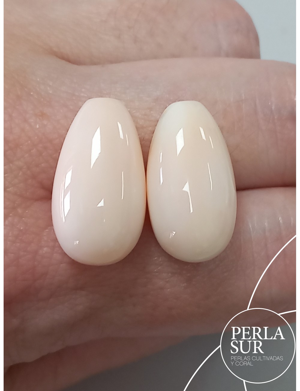 Pareja perillas coral rosa, tono claro. Medio taladro. Precio del par, indivisible.