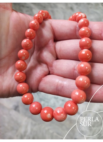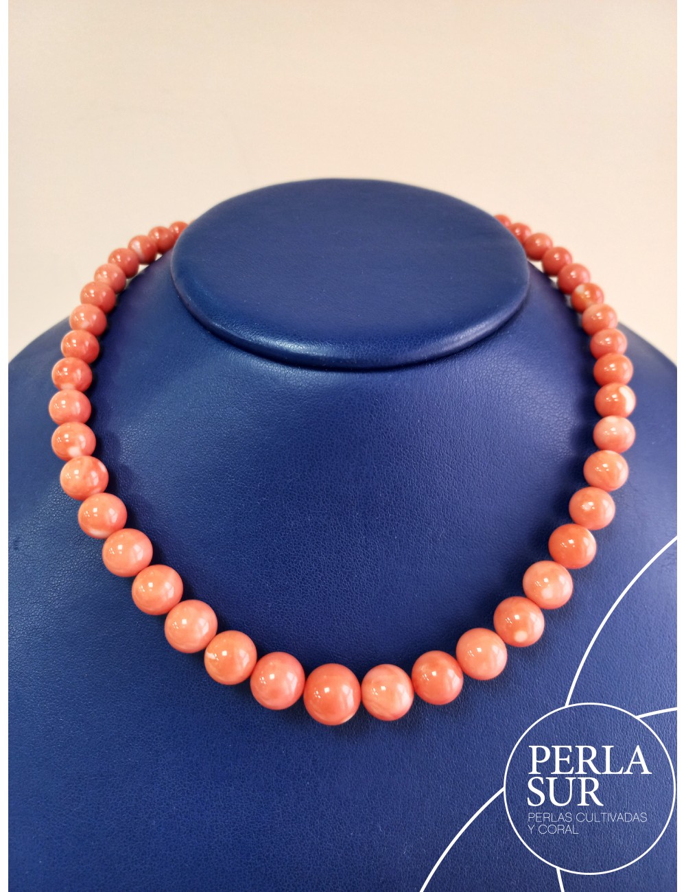 Collar bola de coral japonés, medidas de 7mm en los extremos a 11mm en la parte central.