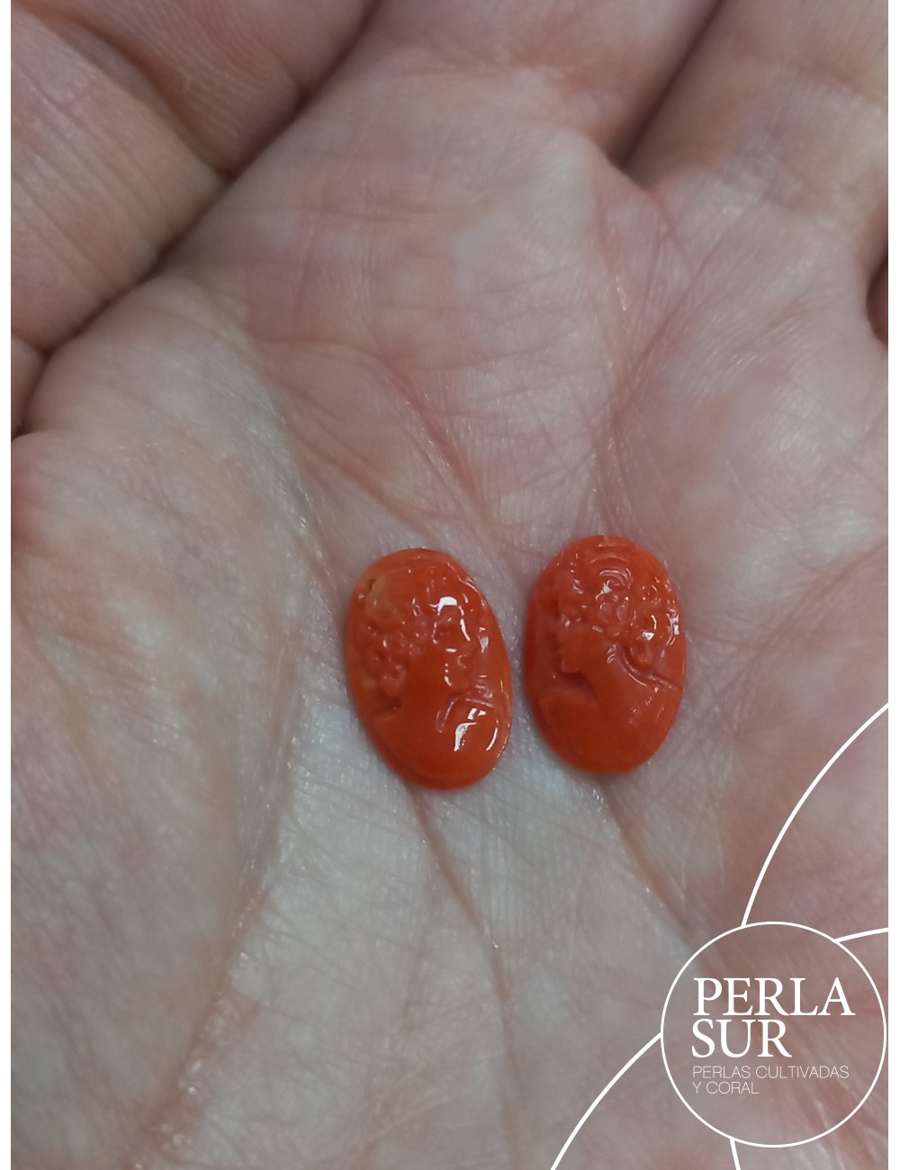 Pareja de camafeos de coral Mediterráneo, de la especie Corallium Rubrum.