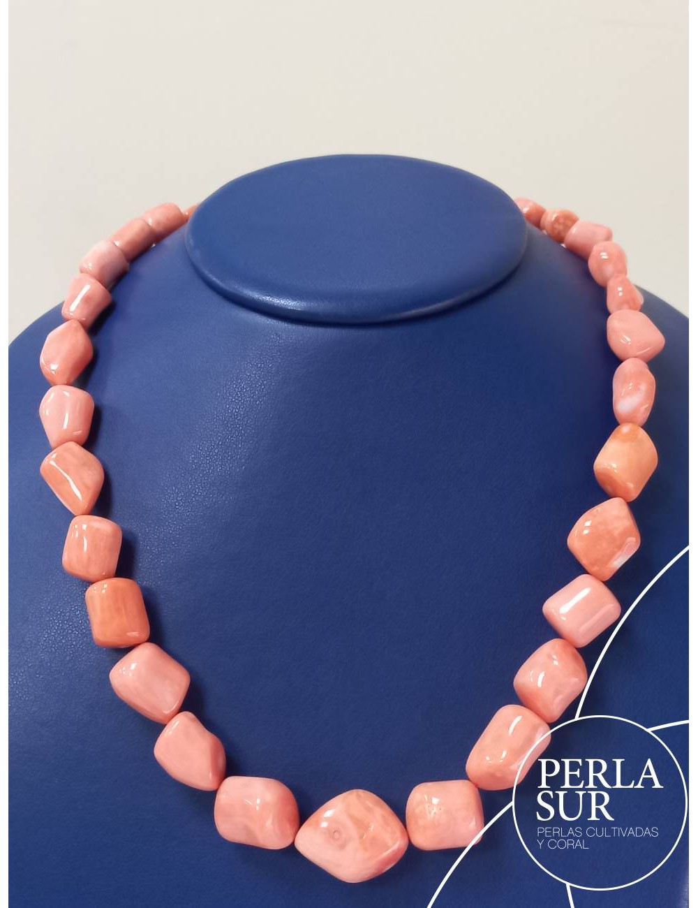 Collar de coral japonés barroco. Mide 53.5cm. Peso 95.6gr. Tiene 34 piezas.