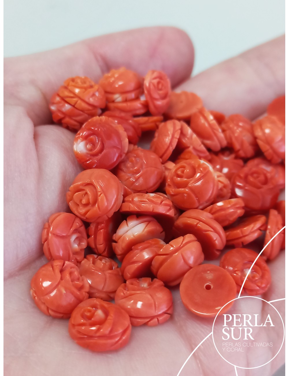 Flor de coral japonés (Corallium Elatius) tallada a mano.