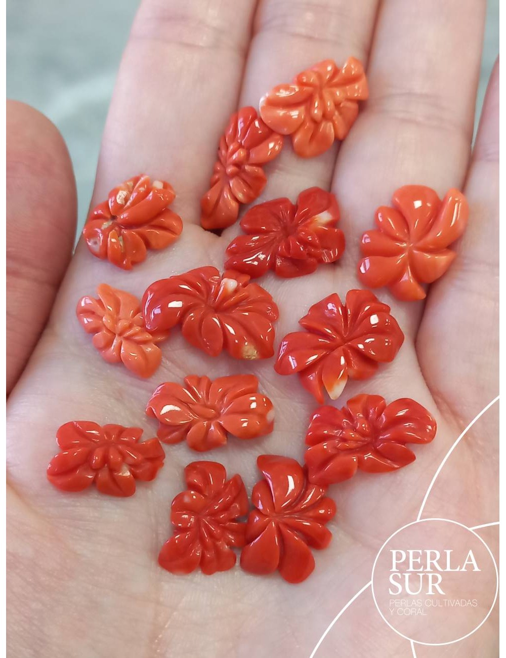 Flor de coral japonés (Corallium Elatius) tallada a mano.