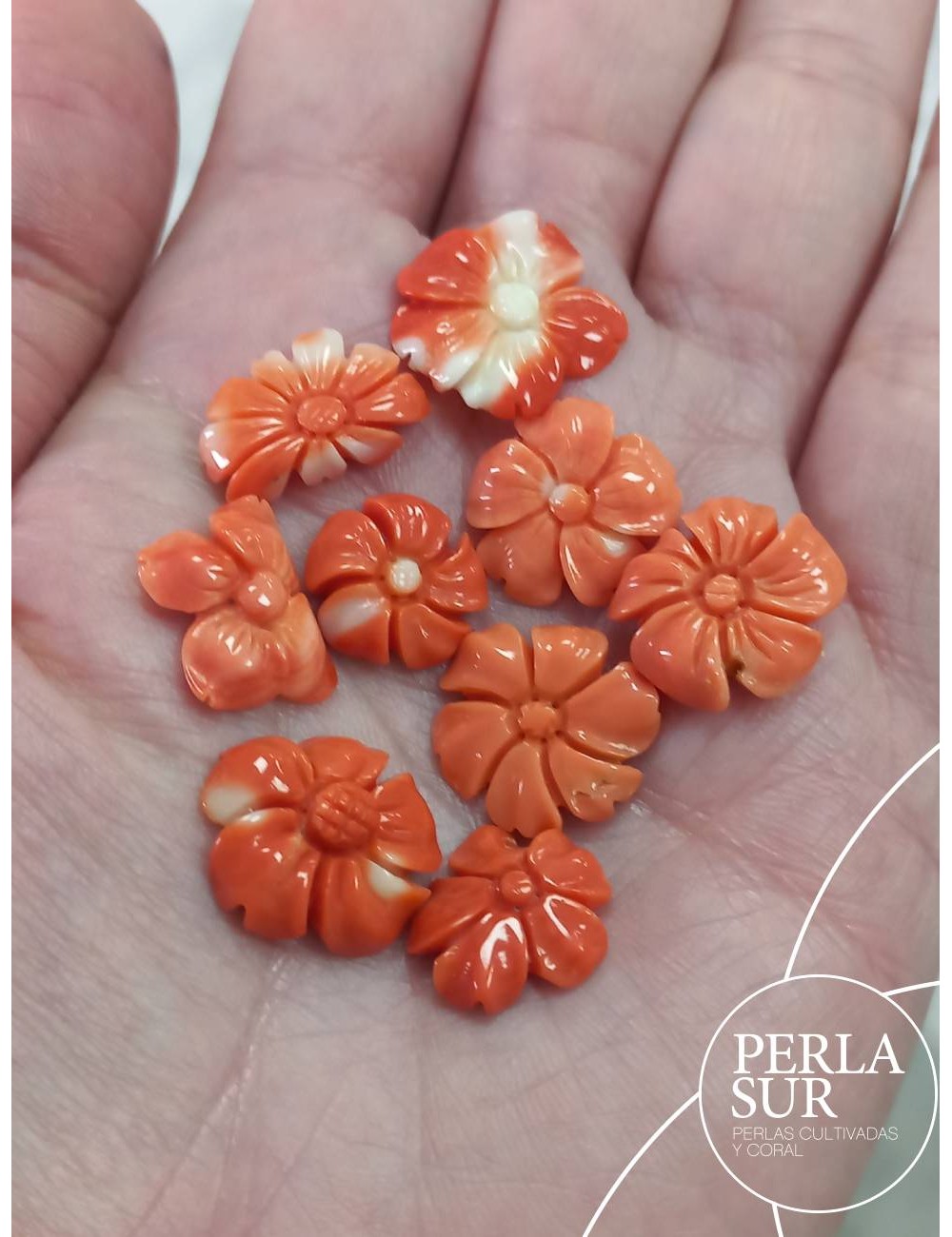 Flor de coral japonés (Corallium Elatius) tallada a mano.