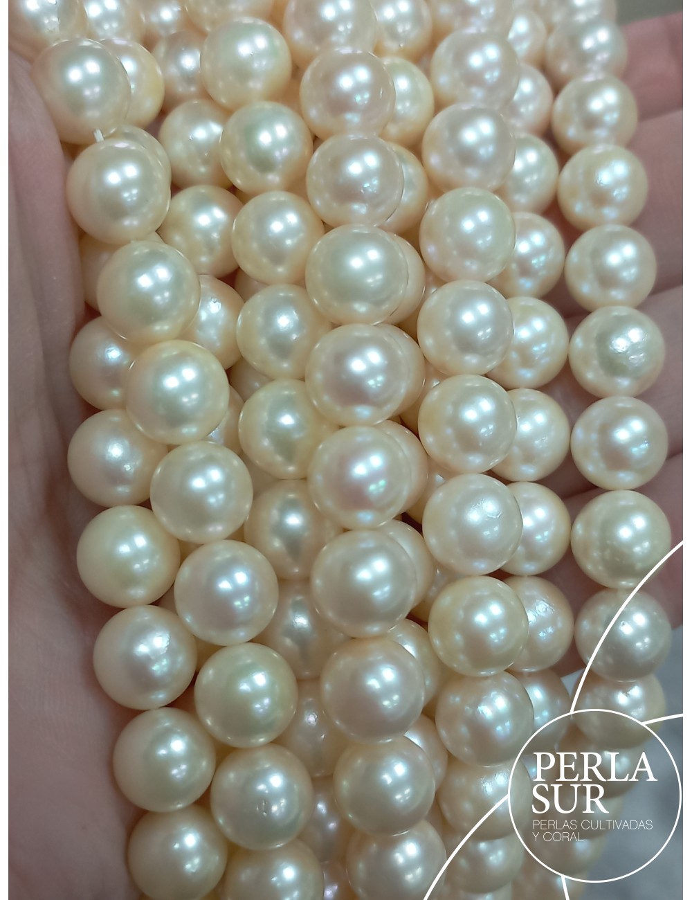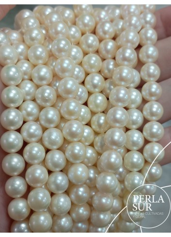 Hilo de perla Akoya redonda, cultivada en la ostra Pinctada Martensii.