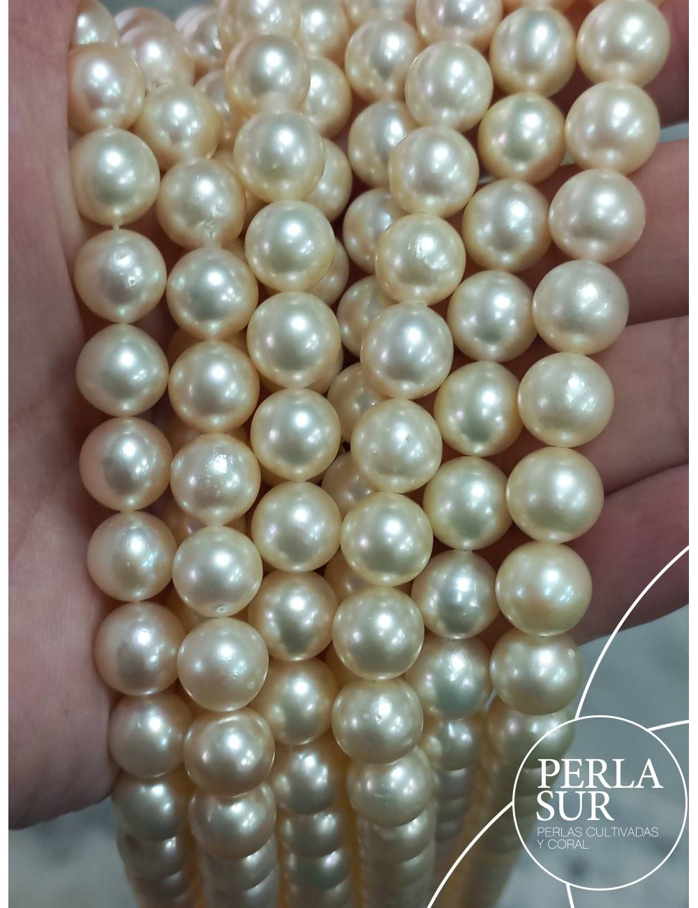 El diámetro de las perlas varía de 9 a 9'5mm.