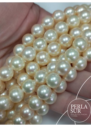 Hilo de perla Akoya redonda golden, cultivada en la ostra Pinctada Martensii.