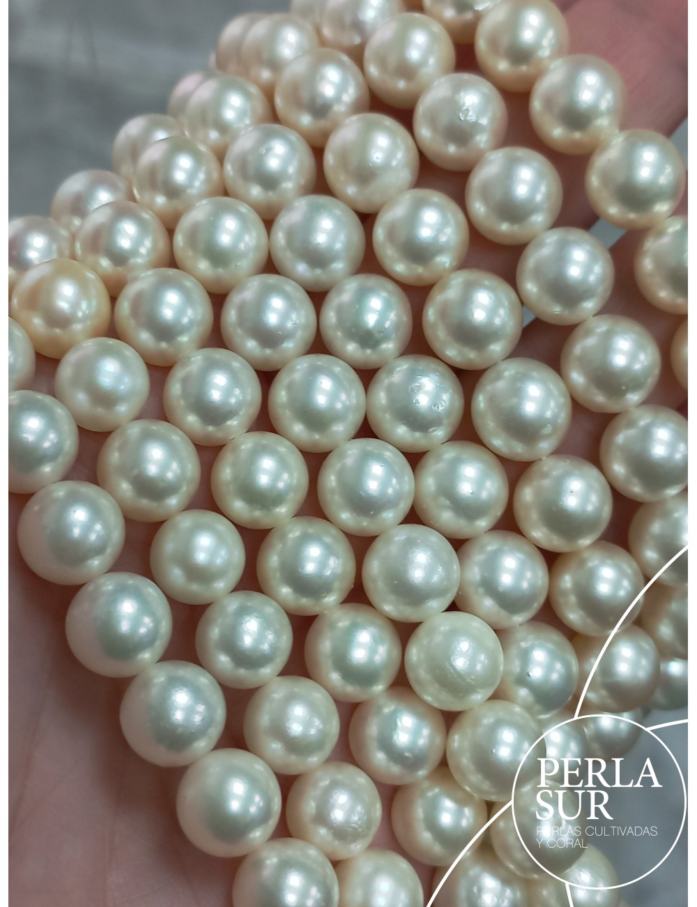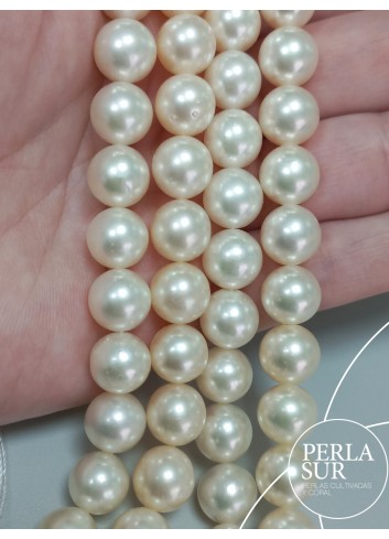 Hilo de perla Akoya redonda, cultivada en la ostra Pinctada Martensii.