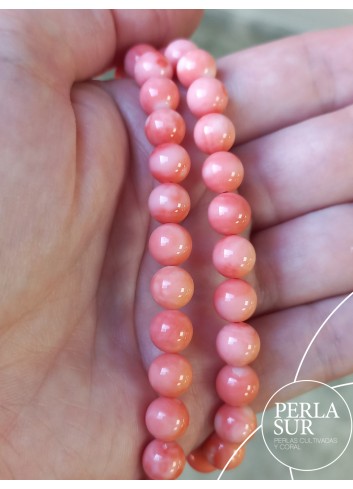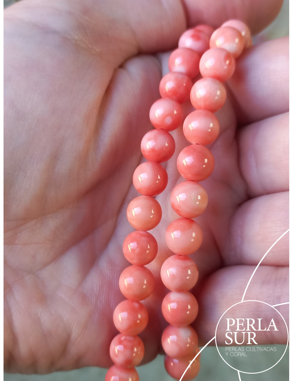 Hilos de bolas de coral japonés (especie Corallium Elatius-Momo). Talladas a mano.