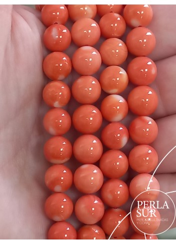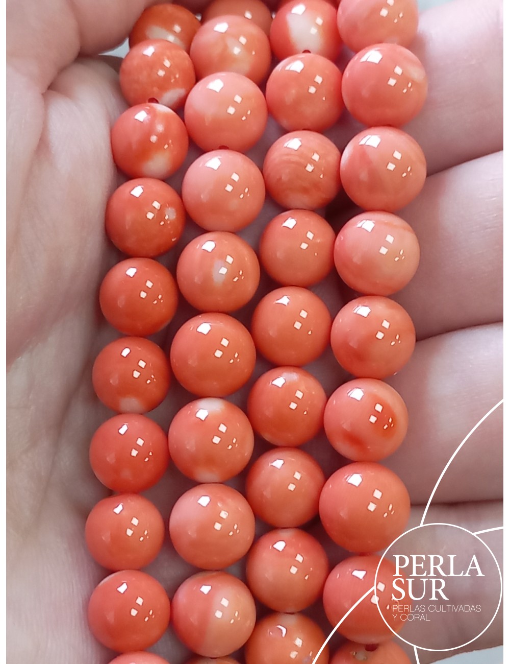 Hilos de bolas de coral japonés (especie Corallium Elatius-Momo). Talladas a mano.