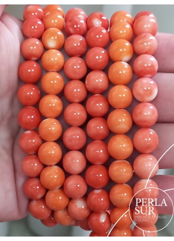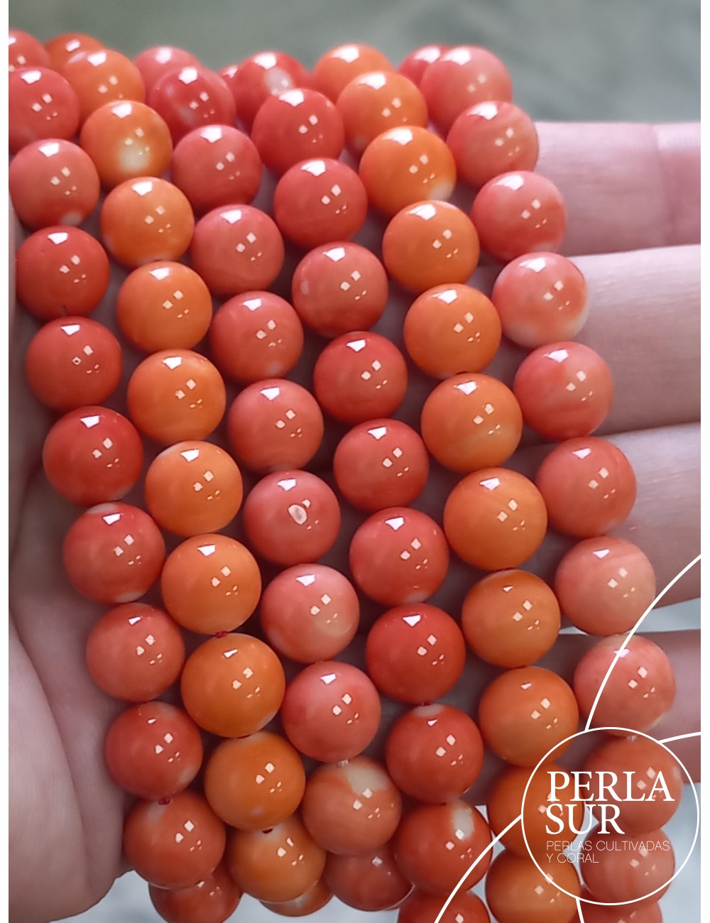 Hilos de bolas de coral japonés (especie Corallium Elatius-Momo). Talladas a mano.