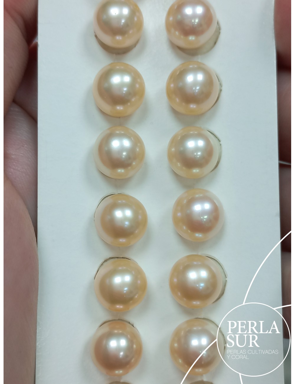 Miden 10-10'5mm de diámetro. Tono rosado salmón metalizado, melocotón rosado.
