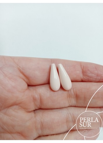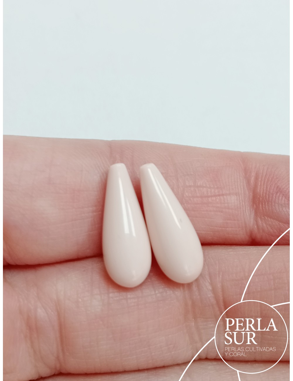Perillas realizadas en material sintético, imitación coral. Tonalidad rosa clarito. Medio taladro.