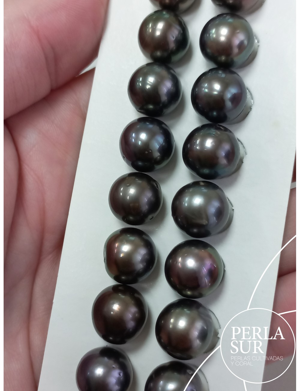 Parejas de perla de Tahití semiredondas, cultivadas en la ostra Pinctada Margaritífera. Tienen varios tonos. Sin taladro. Precio por pareja.