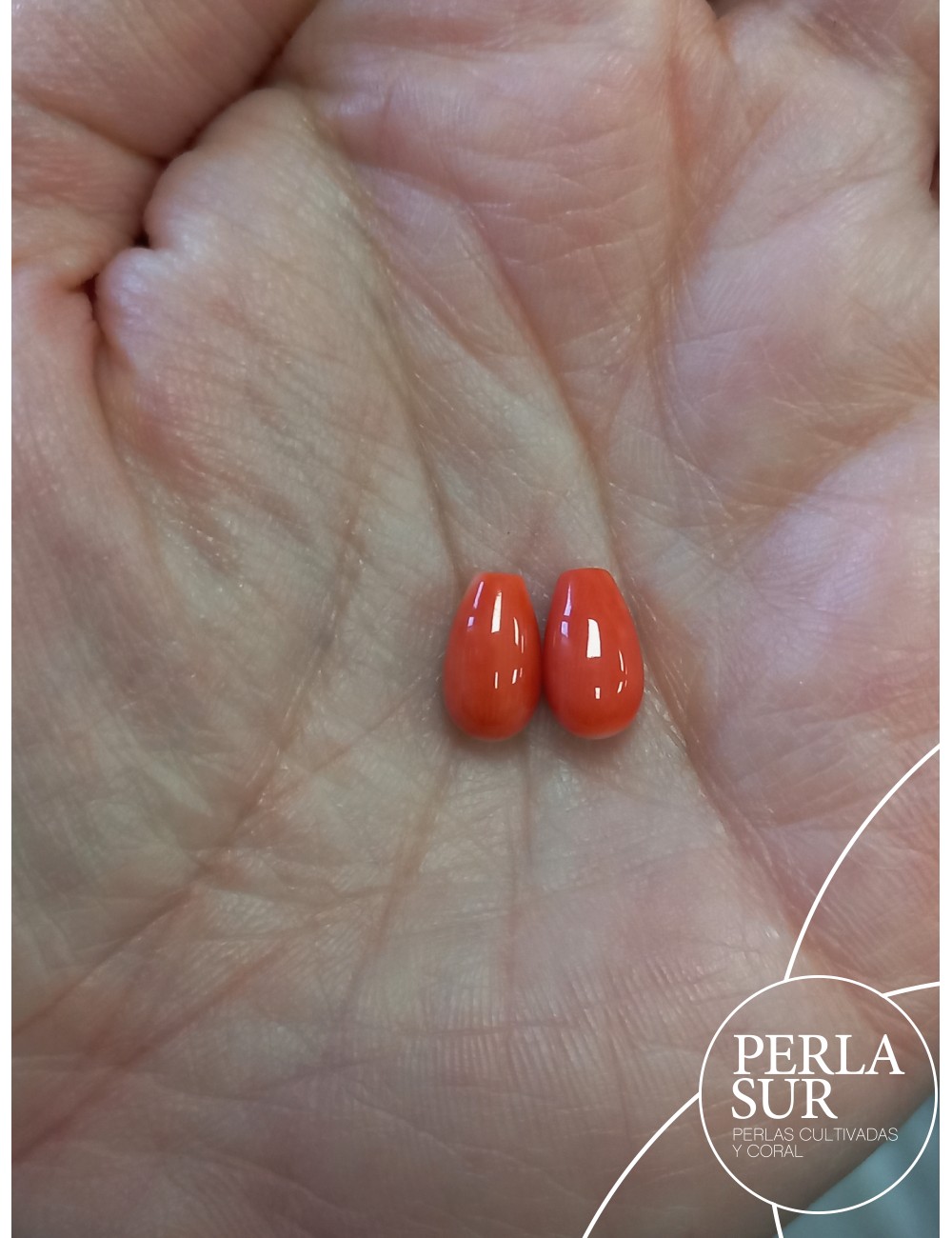 Perillas de coral japonés (especie Corallium Elatius). Talladas a mano.