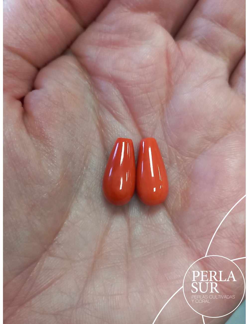 Perillas de coral japonés (especie Corallium Elatius). Talladas a mano.