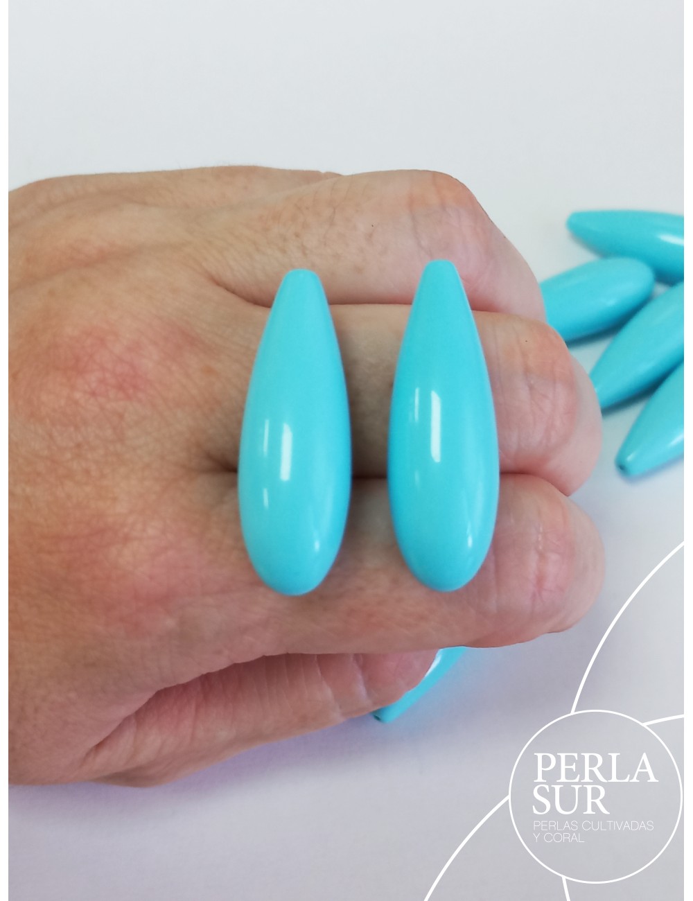 Perilla 35x12mm 1/2t turquesa reconstituida, medio taladro.