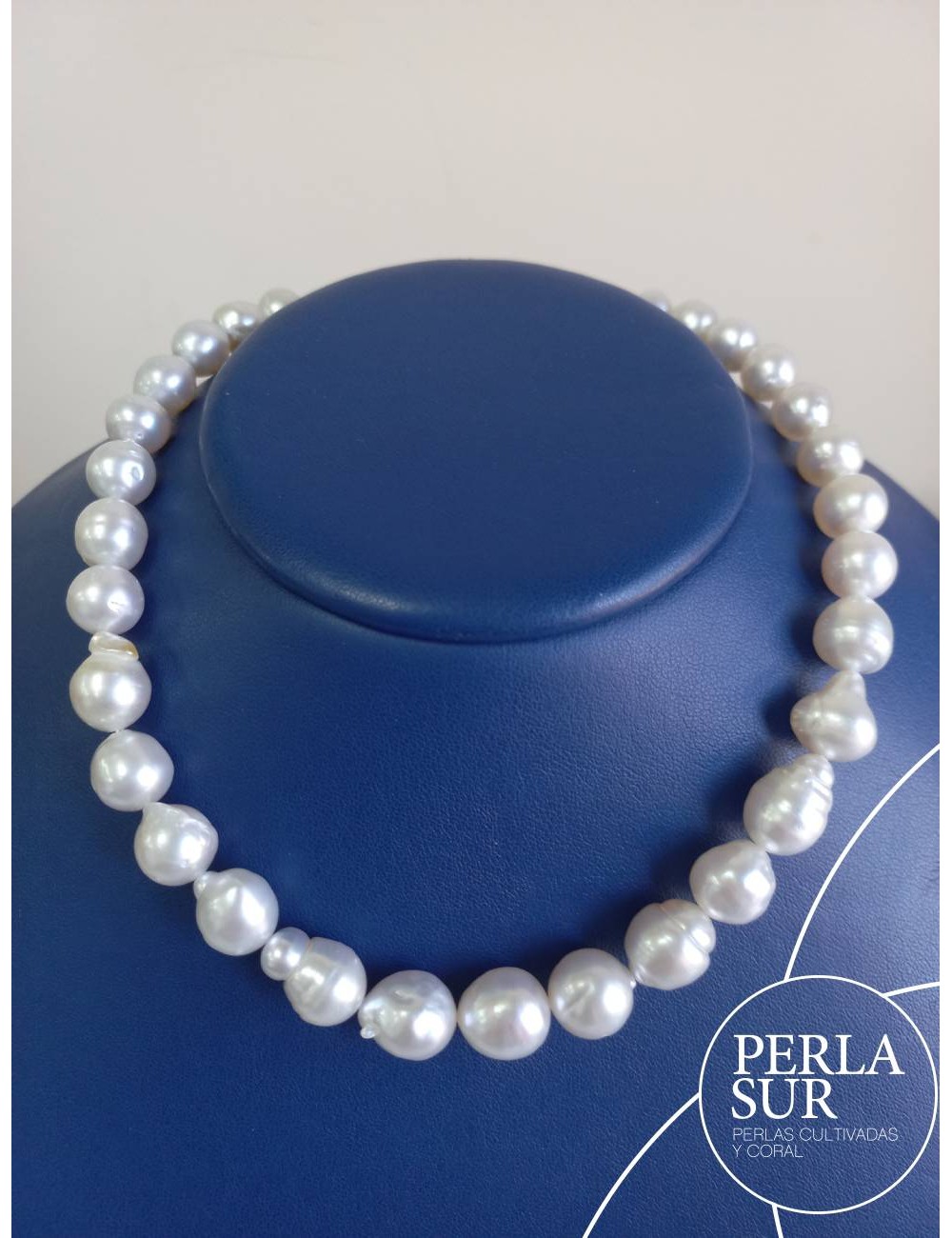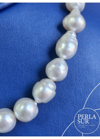 Hilo de Perla Australiana Barroca en disminución. Se compone de 37 perlas desde 9 a 12mm. Mide 42cm de longitud. Cierre no incluído.