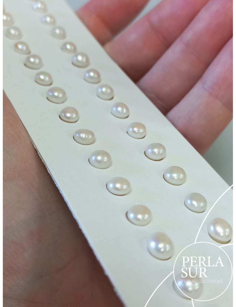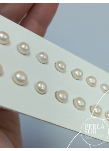 Pareja Perla Botón Blanca 4-4´5mm medio taladro. Perla cultivada agua dulce con forma de botón. Tienen un medio taladro en la base. Precio por pareja.