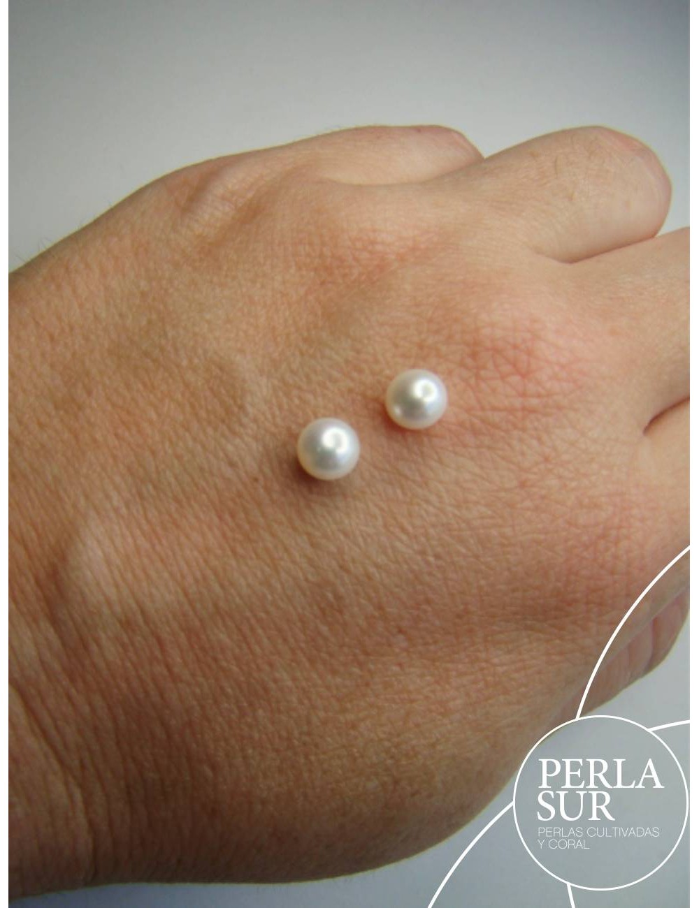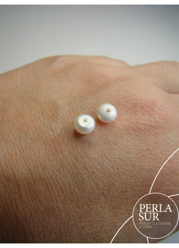 Pareja Perla Botón Blanca 4-4´5mm medio taladro. Perla cultivada agua dulce con forma de botón. Tienen un medio taladro en la base. Precio por pareja.