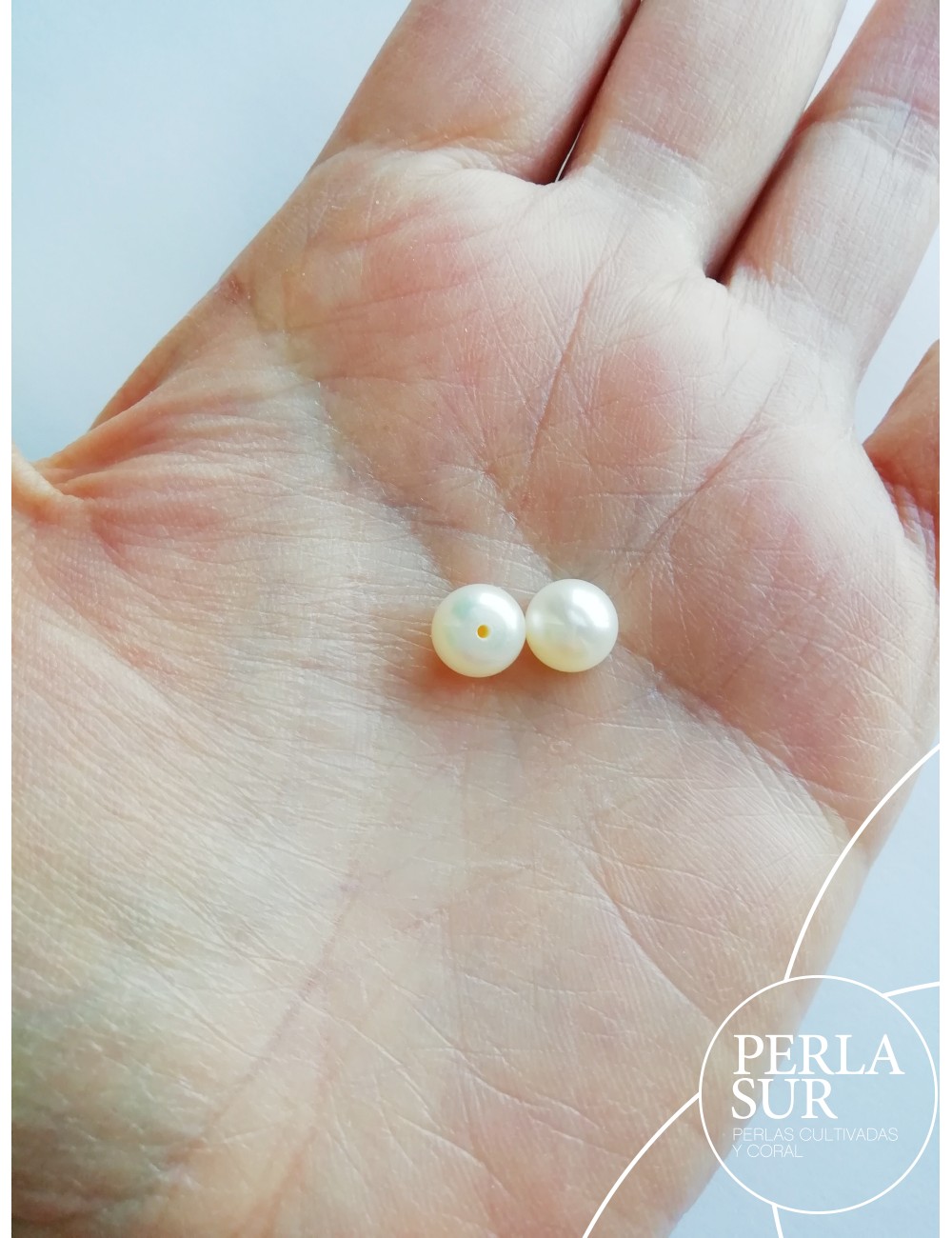 Pareja Perla Botón medio taladro 7-7,5mm. Perla cultivada agua dulce con forma de botón. Tienen un medio taladro en la base. Precio por pareja.