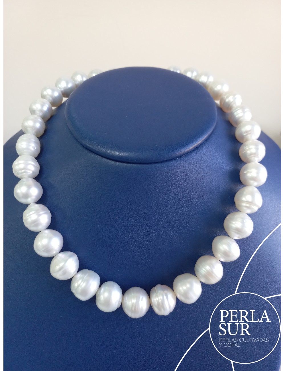 Collar de perla cultivada australiana barroca, cultivadas en la ostra Pinctada Maxima.