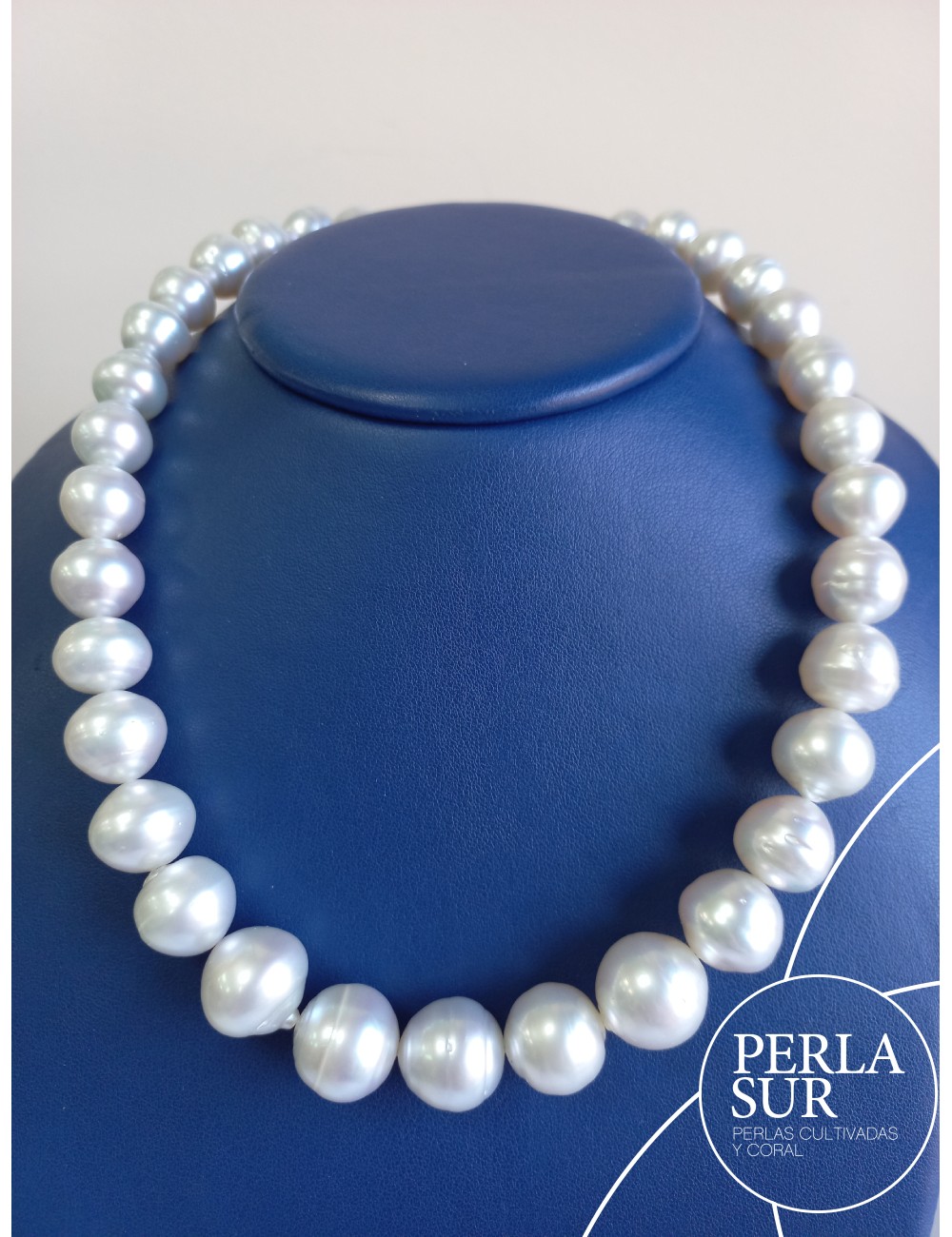 Collar de perlas cultivadas australianas barrocas. Cultivo en la ostra Pinctada Maxima.
