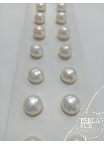 Pareja perla cultivada agua dulce, con forma abotonada. Tiene medio taladro en la base.