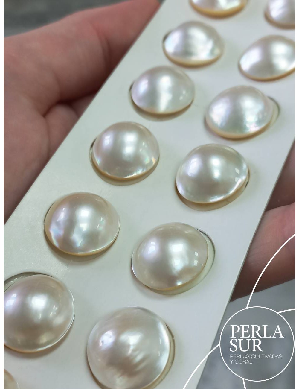 -Media perla que se cultiva en la concha del molusco. Es como una casquilla de nácar. Éstas, en concreto, tienen forma hacia arriba en los bordes.