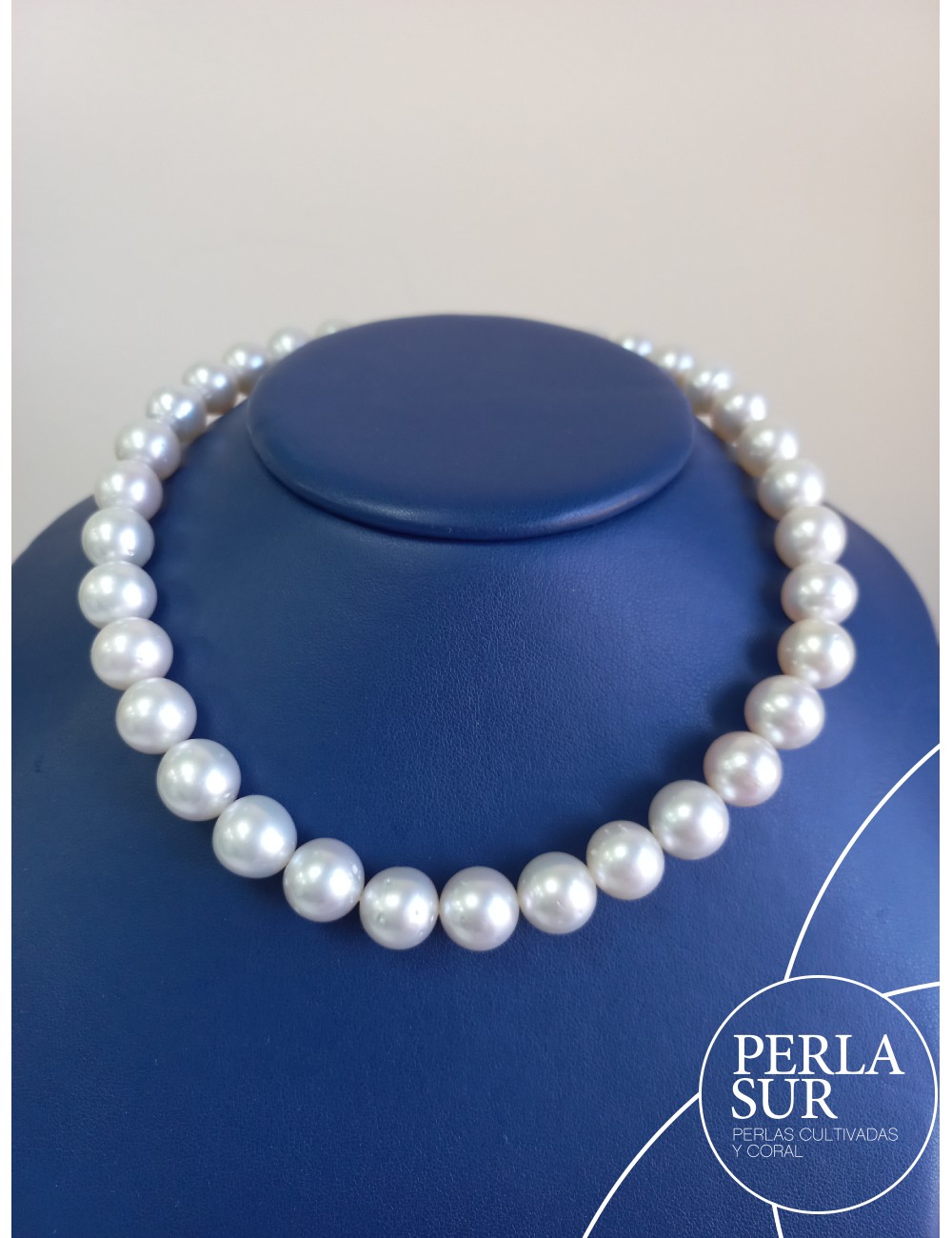 Collar perla australiana redonda, cultivada en la ostra Pinctada Maxima. El largo es de 40cm.