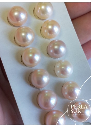 Mide 9'50-10mm de diámetro esférica. Tonos rosado melocotón.