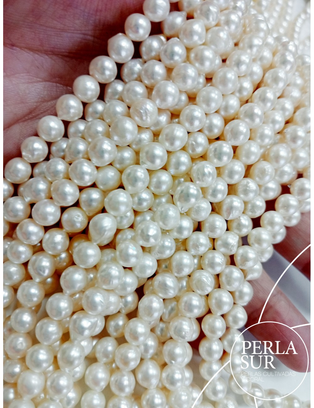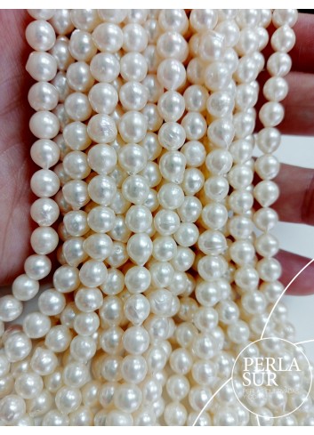 Hilo perla cultivada AKOYA 6-6'5mm semibarroca, con cultivo y brillo. Largo del hilo 40cm.