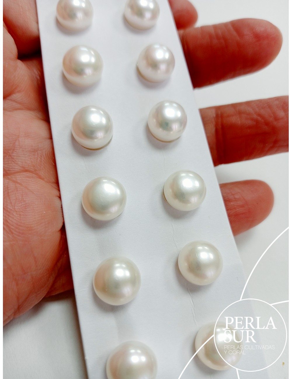 Pareja perla botón 1/2t 9-9'5mm blanca +