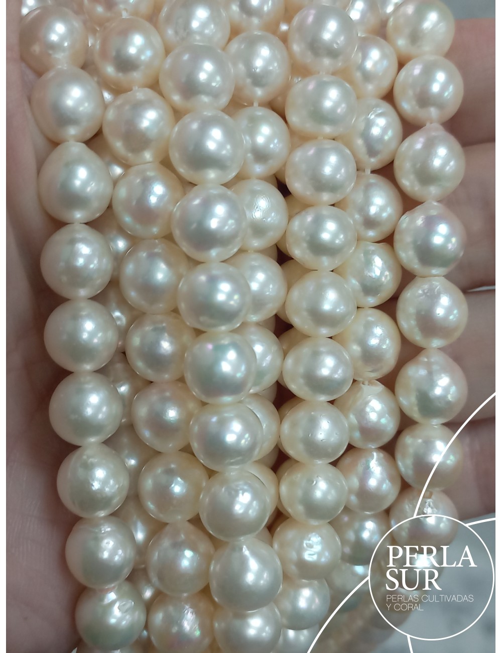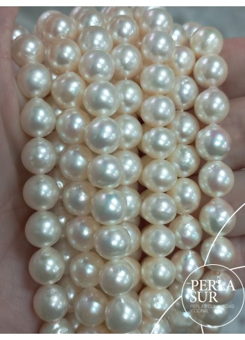 Hilo perla cultivada AKOYA 8'5-9mm semibarroca tono blanco crema, con mucho cultivo y brillo.