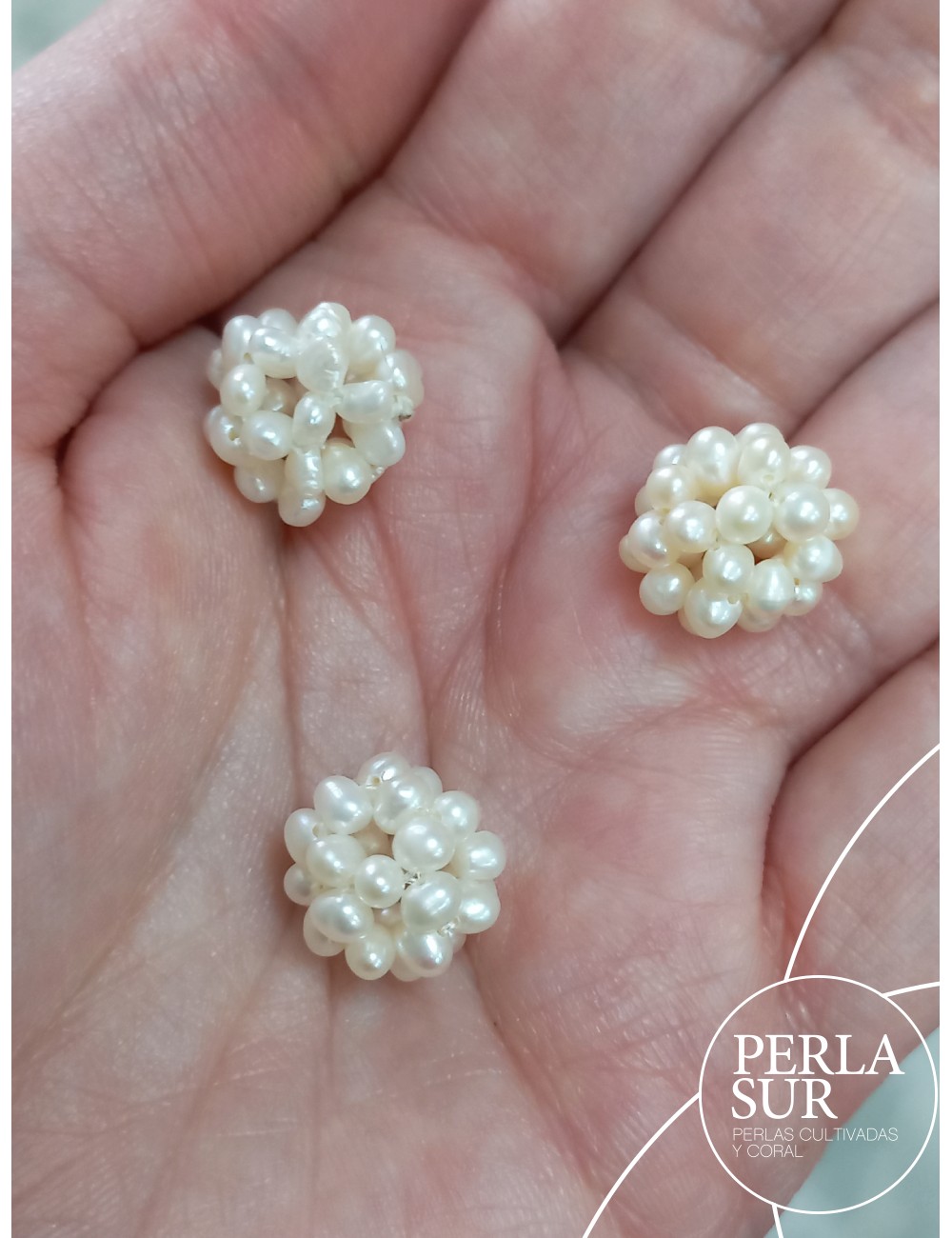 Bolita hecha de perla cultivada de agua dulce barroca, color blanco-crema.