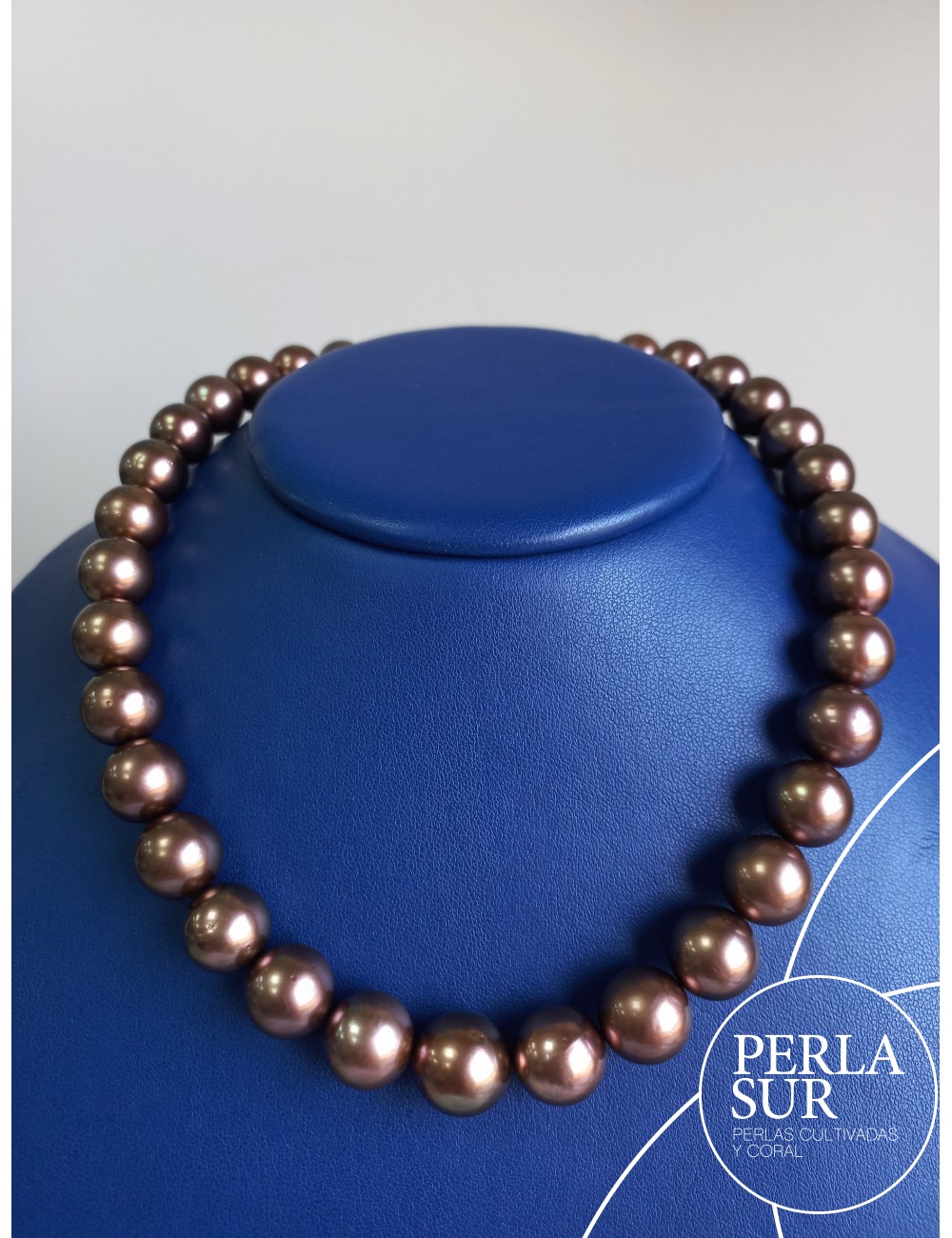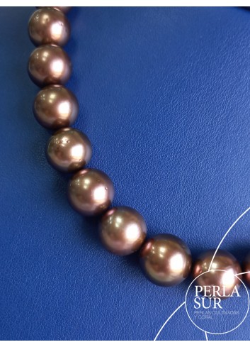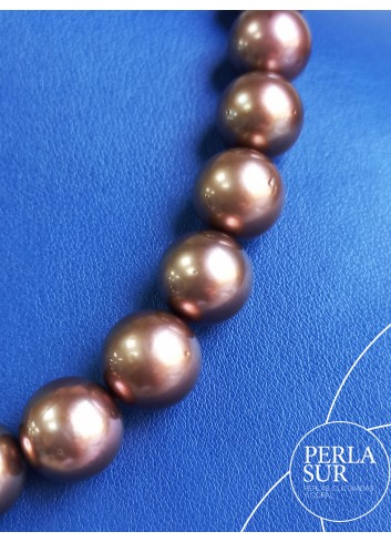 Hilo de perla Australiana Redonda chocolate, con tratamiento de color. Perlas cultivadas en la ostra Pinctada Máxima.