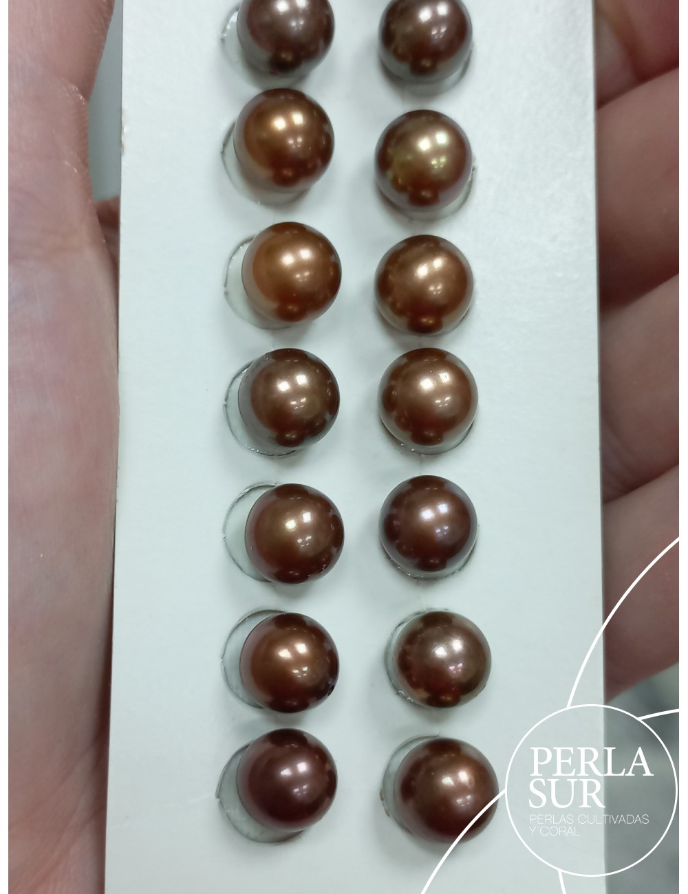 Perlas cultivadas de agua dulce, color chocolate. Color tratado, no natural.
