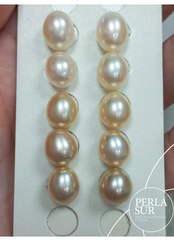 Perlas ovales de tamaño 9-9´5mm de ancho y 13mm de largo.