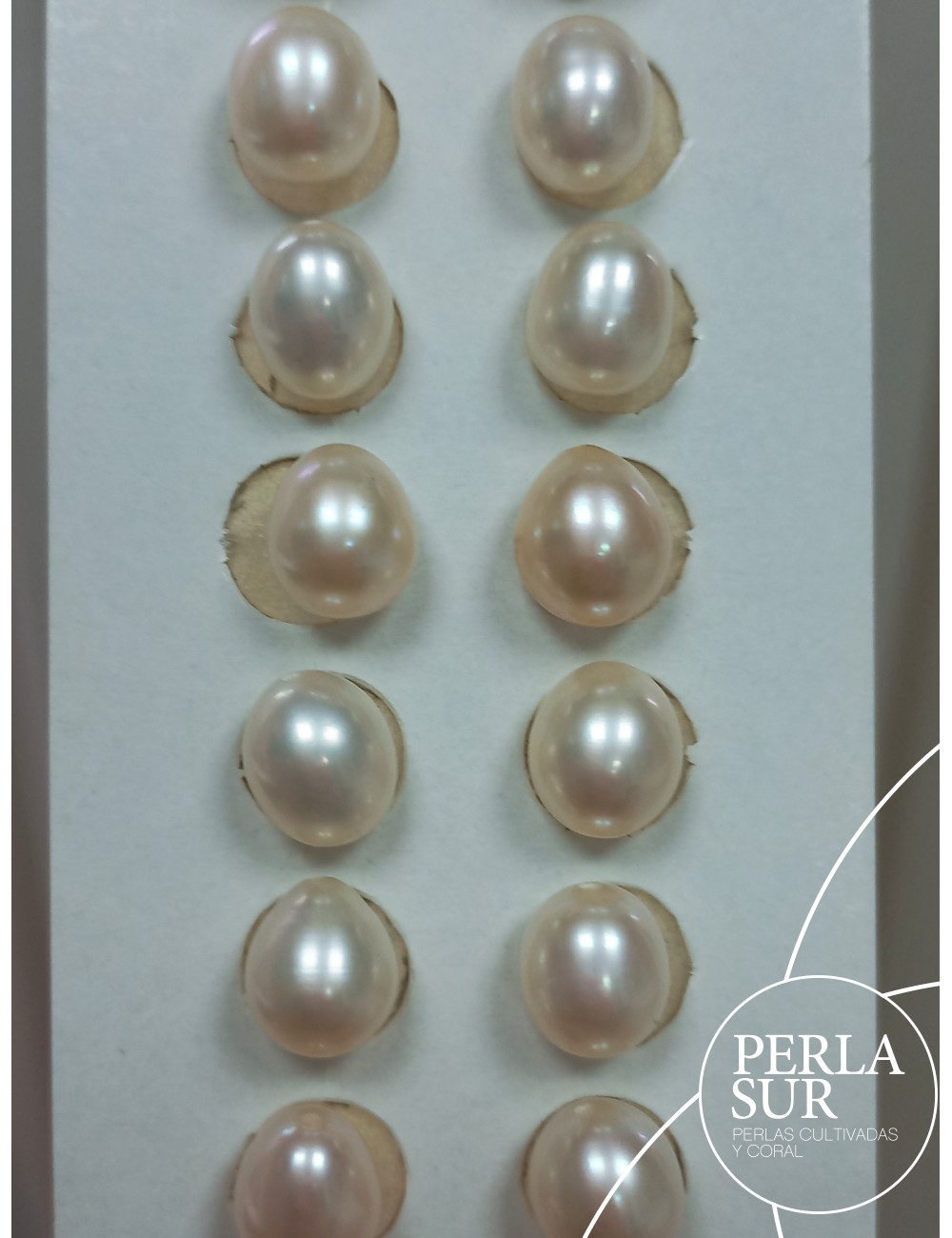 Pareja de perla cultivada de agua dulce con forma oval perilla.